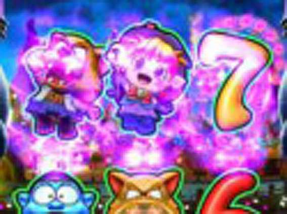 おばけ上高速リーチで中図柄が停止した後、おばけが図柄にのっかると発生。大当りに絡むことが多い注目リーチだ。