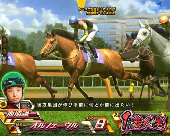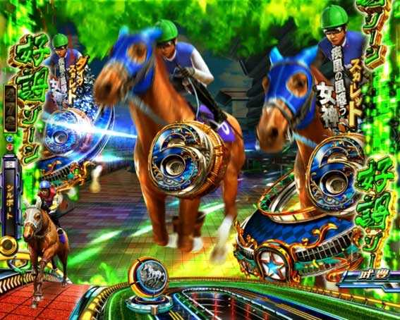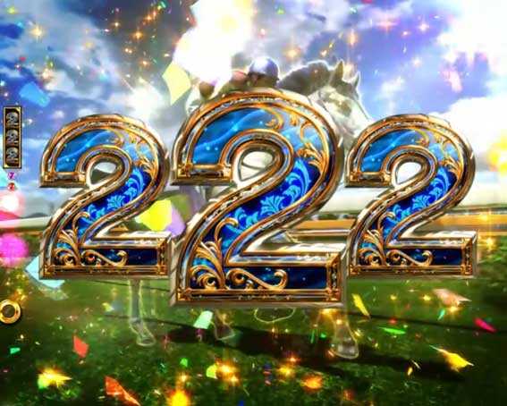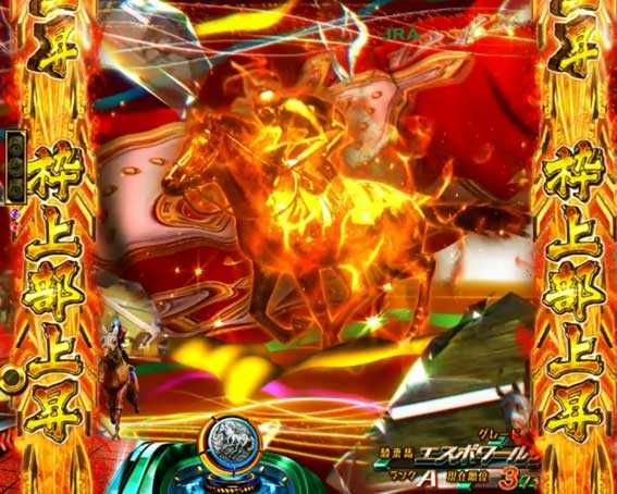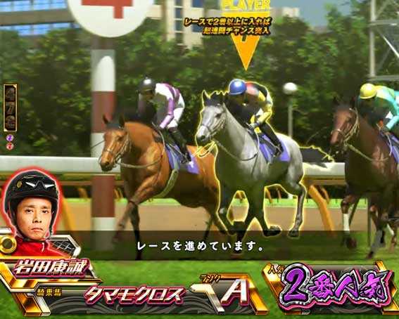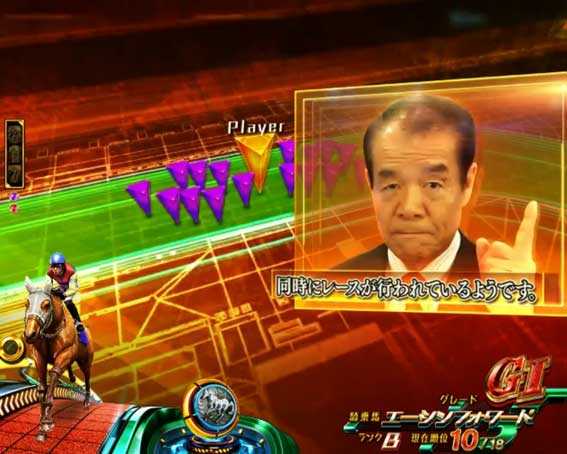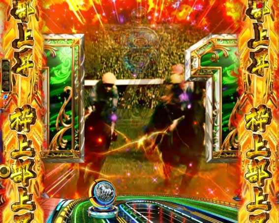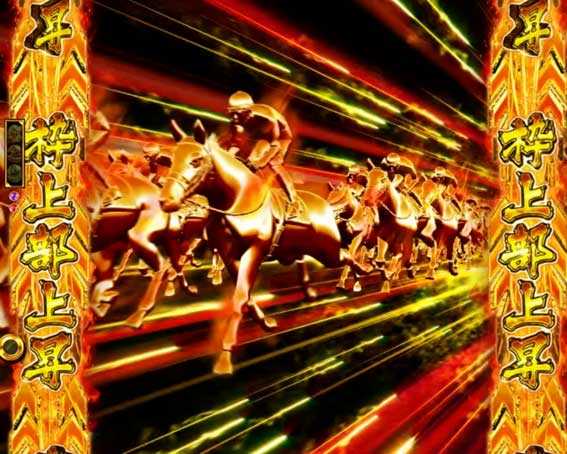 液晶左下に常駐している馬の前にゲートが出現してカウントダウンが始まる。カウントが「0」になったら強演出の発生に期待したい。