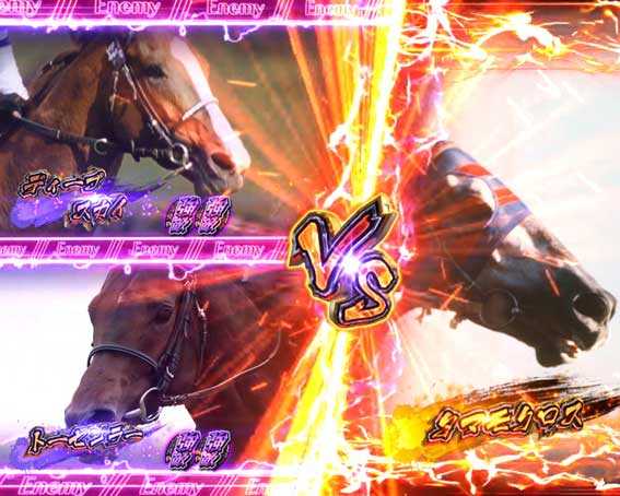 超連闘チャンス中に10R確変を引くと、ラウンド中は名馬たちが活躍したレースを実写ムービーで堪能できるぞ!