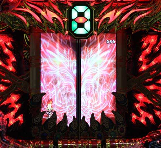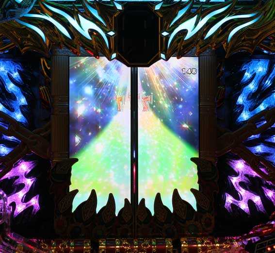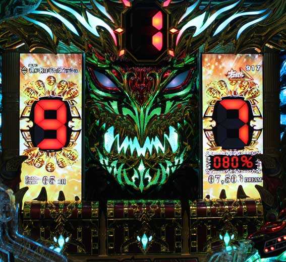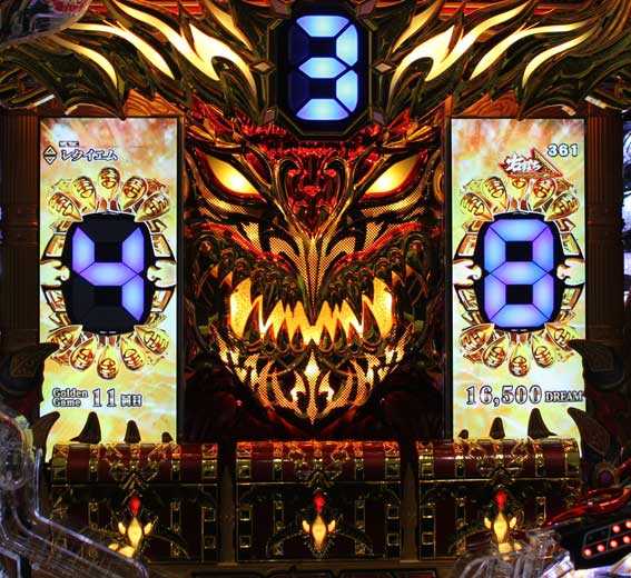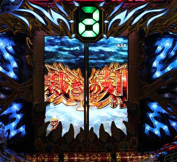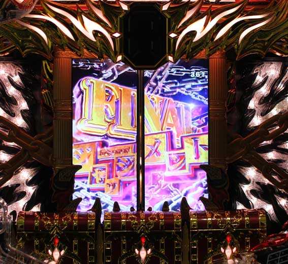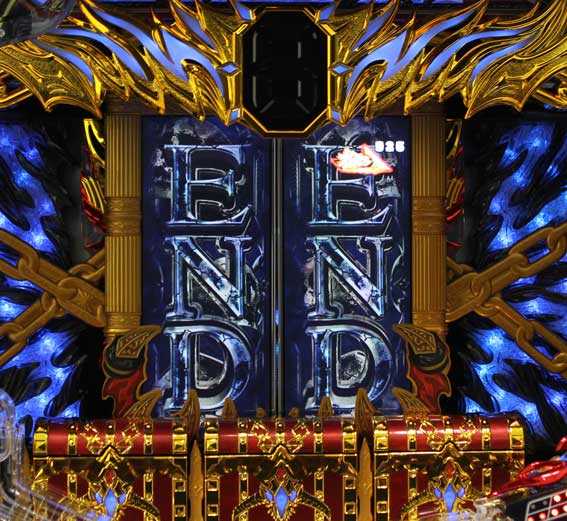 確変「GOLDEN GAME」(GG)は次回大当りまで電サポが継続する。GG中の大当り確率は約1/88で消化スピードが早く、かつ大当りの77.3%がMAXラウンド&GG継続だ。なお、GG中は専用演出「終焉の時」が発生すると、END BONUS当選&GG終了のピンチとなる。