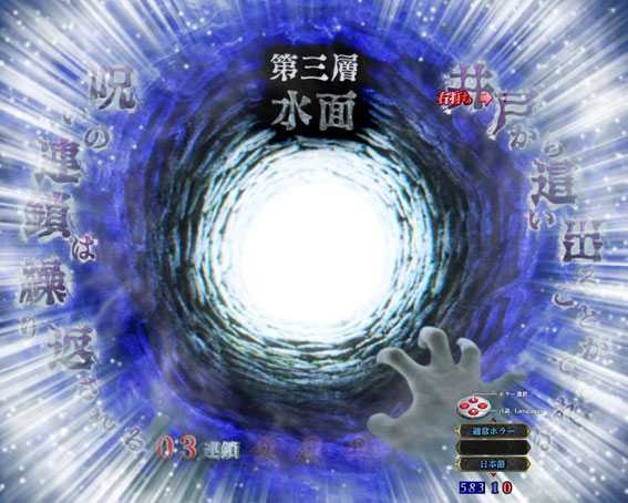 ST前半は呪いの手落下で大当りとなる「貞子接近モード」、ST中盤は3つの異なる演出から選択できる(※)「呪いの連鎖」、ST終盤は井戸から脱出できれば大当りの「最後のあがき」が展開。ST終了後は基本的に通常時に戻るが、598回転時短へ突入する可能性もアリ。