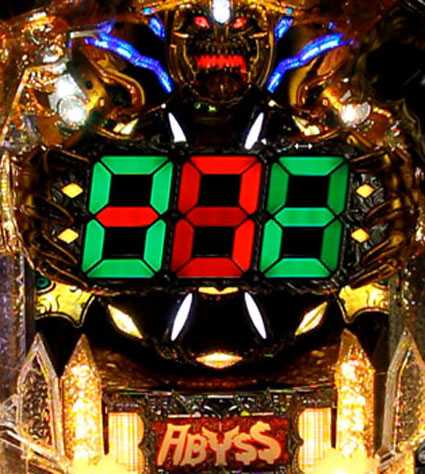 アビスシャッターが開いて、ミニセグで左のセグか右のセグを選ぶ演出が始まるとチャンス。「c」が選ばれるとリーチorチャンス目、「C」が選ばれるとチャンス、「7」が選ばれれば大当り濃厚だ。