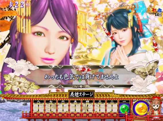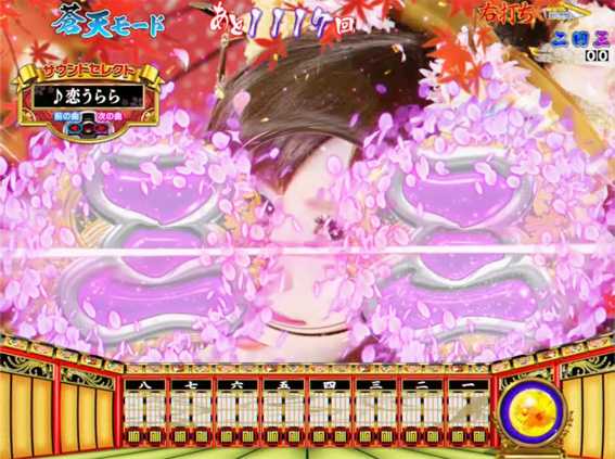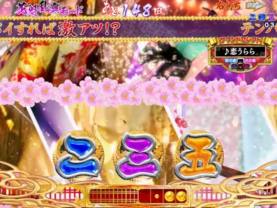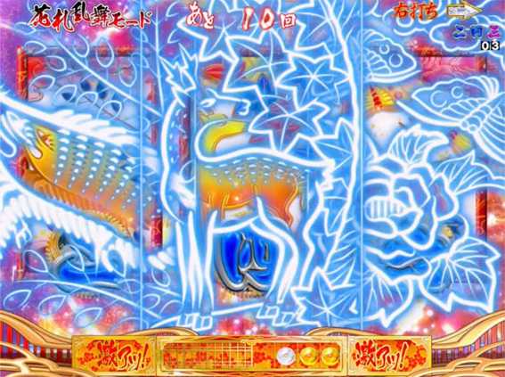 全大当り後に突入する150回転のST。1~50回転は図柄がテンパイすれば激アツ(!?)の「花魁乱舞モード」、51~150回転は多彩な予告やリーチで大当りを煽る「花札乱舞モード」となる。なお、時短中の大当りからSTへ突入した場合、ST終了後は958回転の時短に突入する。