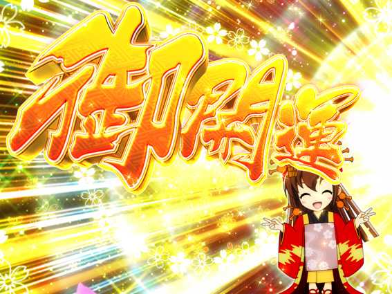 通常時に発生する御開運チャンス成功で当選する2R確変大当り。終了後はSTに突入。