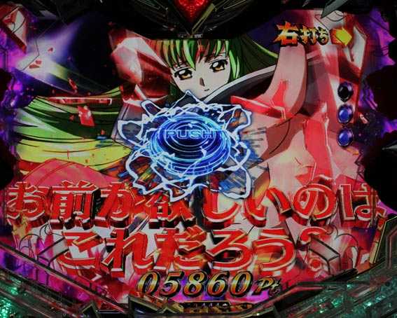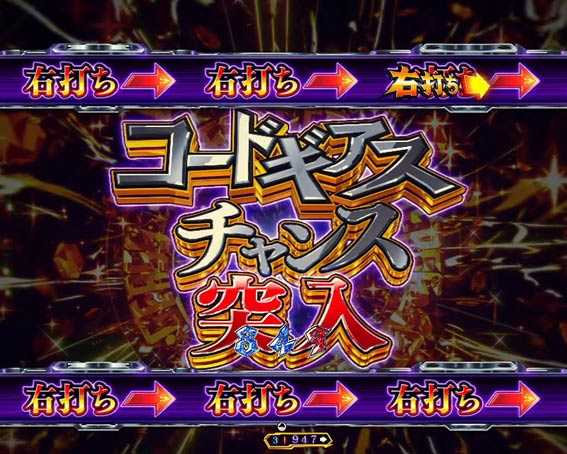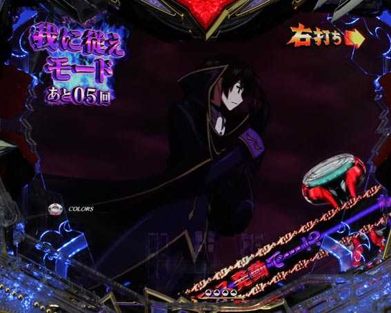 初回大当りの80%は、終了後にこのモードへ突入。5回の大当りチャンス(時短1回転+残保留4個)がある右打ちモードで、当たればコードギアスチャンスorSPエピソードに突入する。