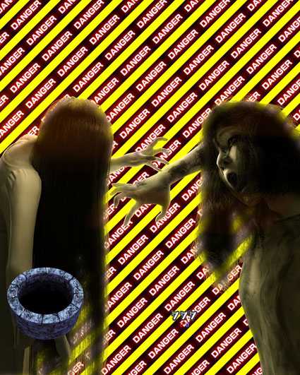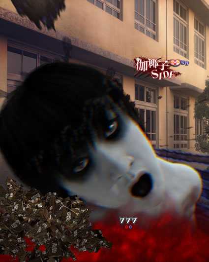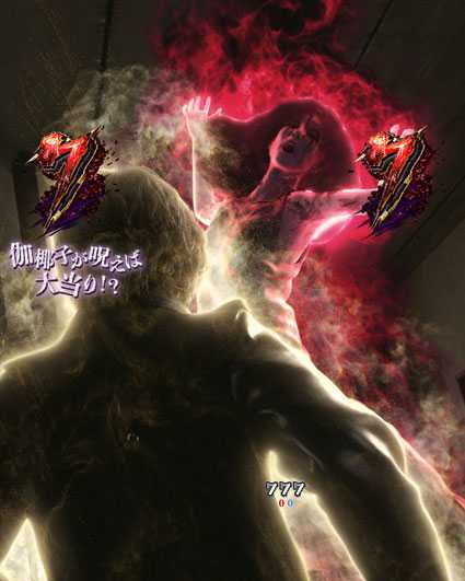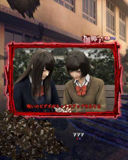 終盤になると伽椰子が女子高生を襲撃。ギガハンド落下で大当りだ。