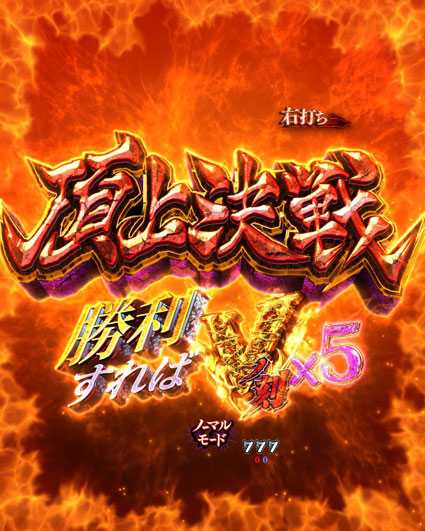 突入経路によって上記のように残保留個数が異なる。また、演出モードが2種類あり、突入前に選択可能。どちらも当たれば頂上決戦BONUS FULL CHARGE当選となる。