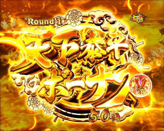 初回大当りの1%がこの天下泰平ボーナスとなる。10Rの確変大当りで、終了後はSTに直行する。