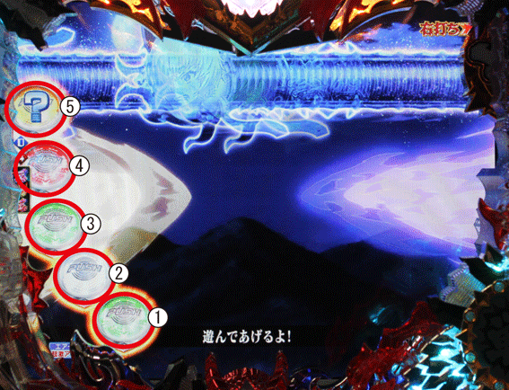裏ボタンで100HITが発生した場合、どの保留で当たったのかを判別することができる。詳細は下記を参照。