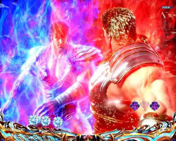 専用の発展煽りを経てカーネルが登場すると発生。ケンシロウとカーネルのバトル演出が展開し、ケンシロウが勝利すれば大当り濃厚だ。