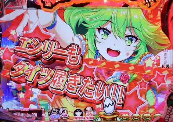 エガちゃんが扉を開けようとする際のエフェクトにも注目。赤だと激アツで、金なら成功濃厚!