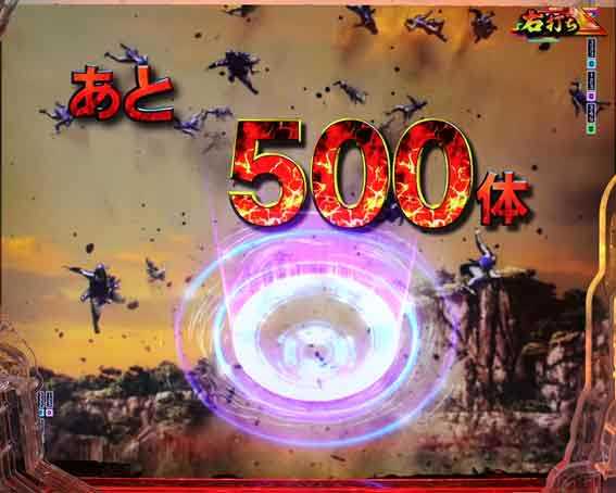 | 虹色文字の「1000撃破」表示 | 大当り濃厚 | ||