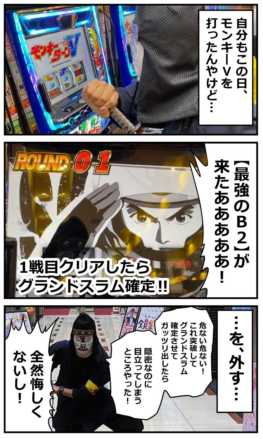 スロ、パチの勝率は…まあ、そこはええやん。目押しレベルは3(10段階)。