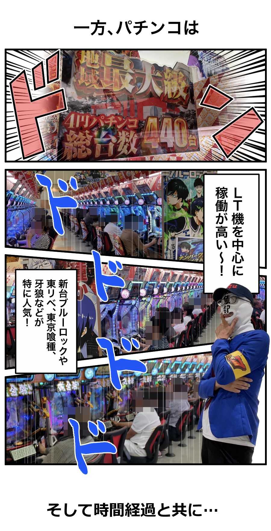 稼働 | パチスロピーク稼働約85% パチンコピーク稼働約55% |