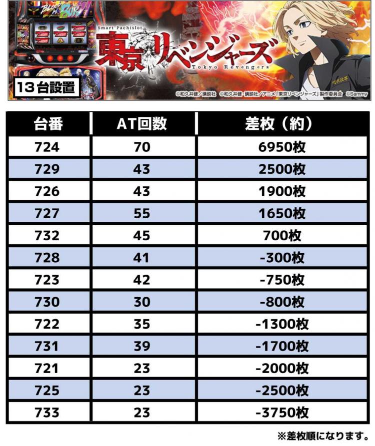 あとは「L東京リベンジャーズ」で、展開に揉まれていそうな台も多かったですが、見応えのあるデータもしっかり確認できました。