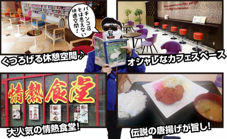 ホール内には、ゆったりとくつろげるカフェスペースや休憩コーナーが設置。パっと見、写真だけだと、パチンコ屋とは思えないオシャレな空間がそこに! 清潔感もあるので女性でも安心して遊びに来れると思いました。