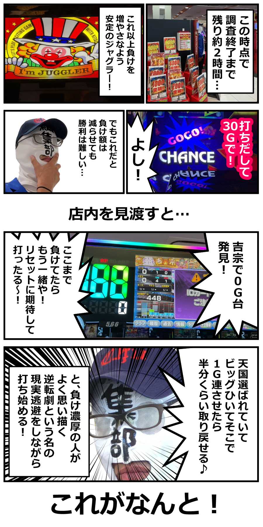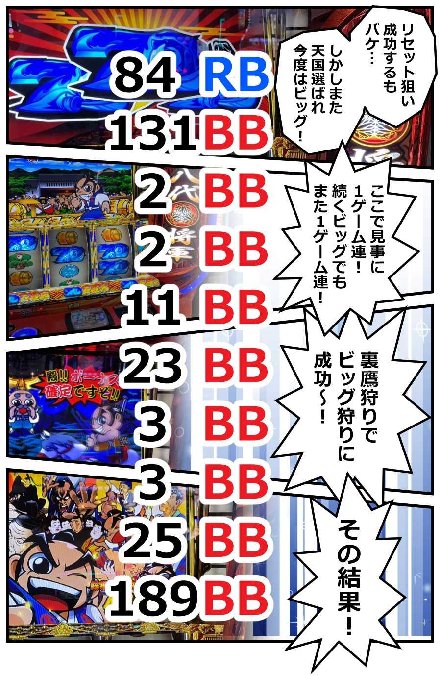 スロ、パチの勝率は…まあ、そこはええやん。目押しレベルは3(10段階)。