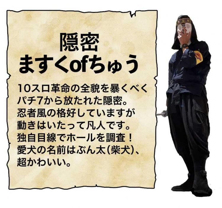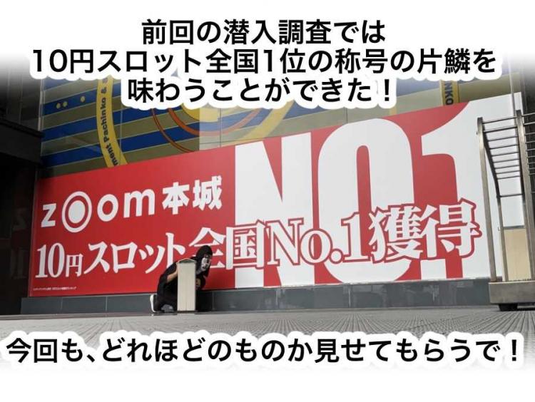 ズーム本城店の 10スロ革命の全貌を暴くため 隠密ますくofちゅうが 再び潜入調査~! |