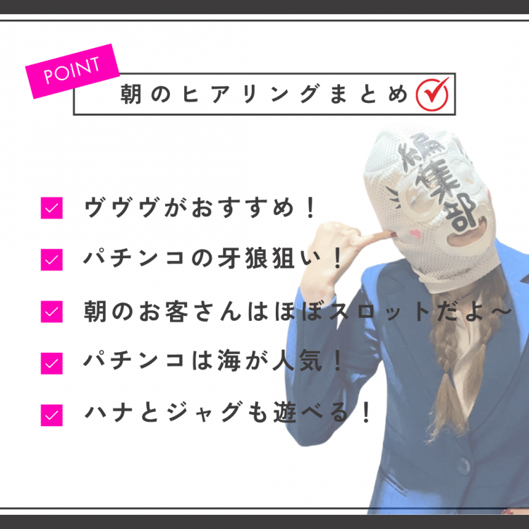 お話を聞くとパチスロ狙いの方が多く、パチンコだったら一般入場でも狙えるよ〜とのお声がありました!
