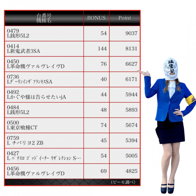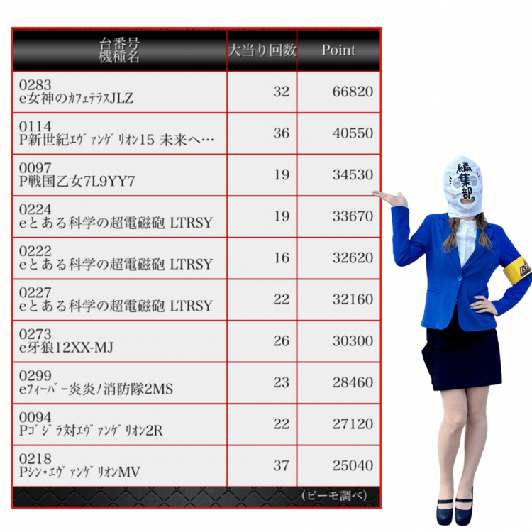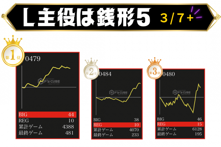 3台構成機種に1/3+でしっかり伸びている機種もあり、人気機種以外にも各所にチャンス有りの状況!