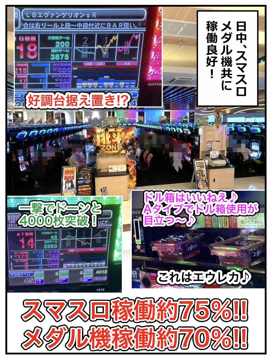 稼働 | パチスロ稼働約70% ※10スロ調査のため パチンコは割愛 |