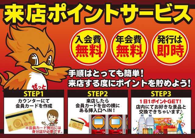 「来店ポイント貯めるだけで景品と交換できのでお徳〜♪」と、ぜっと君が言ってました。