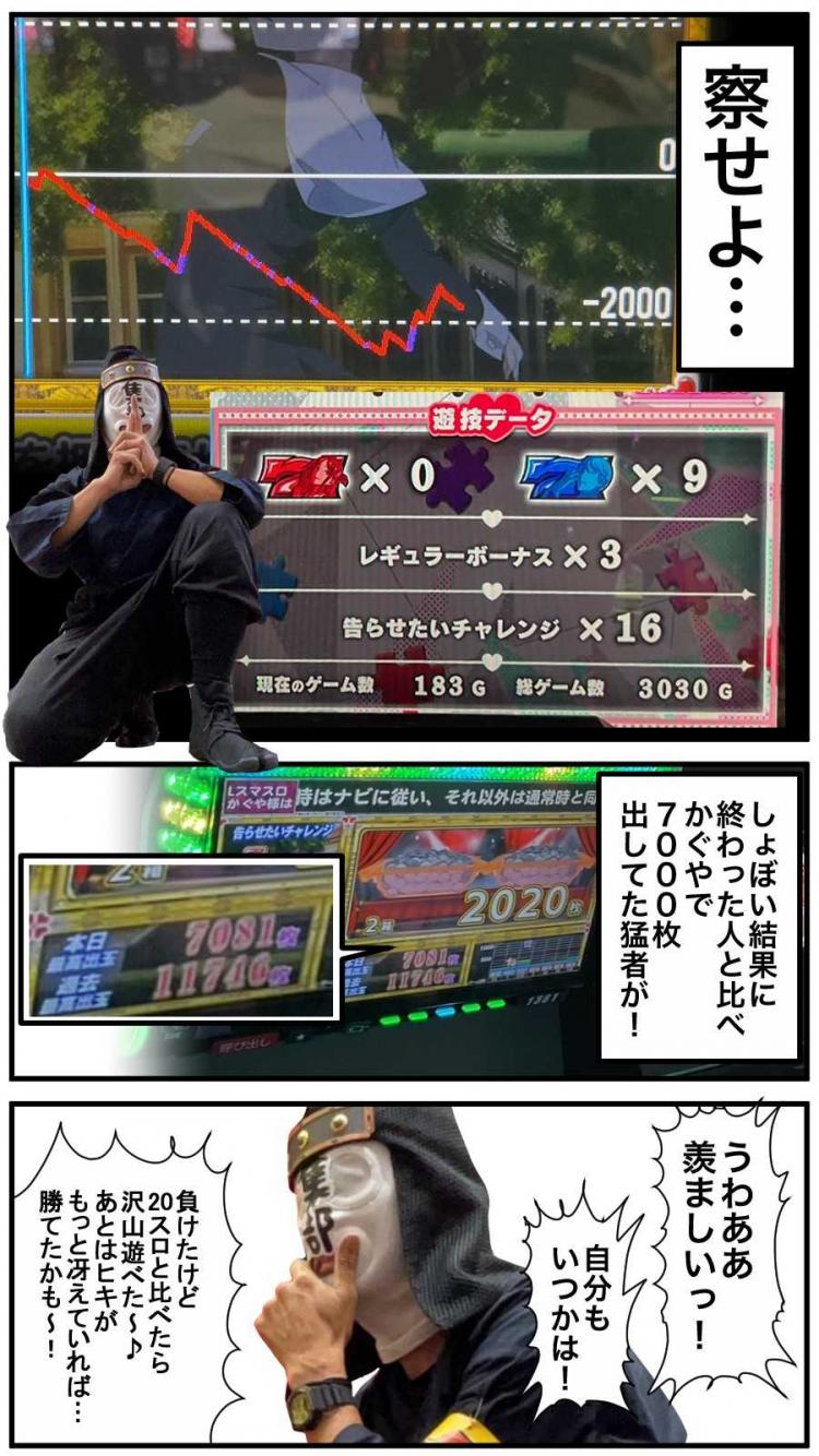 スロ、パチの勝率は…まあ、そこはええやん。目押しレベルは3(10段階)。