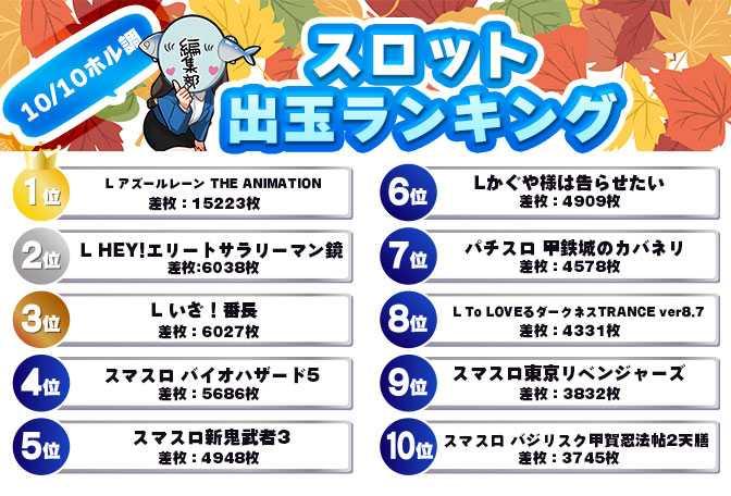 「アズールレーン」「いざ!番長」「スーパブラックジャック」「新台:新鬼武者3」「東京リベンジャーズ」