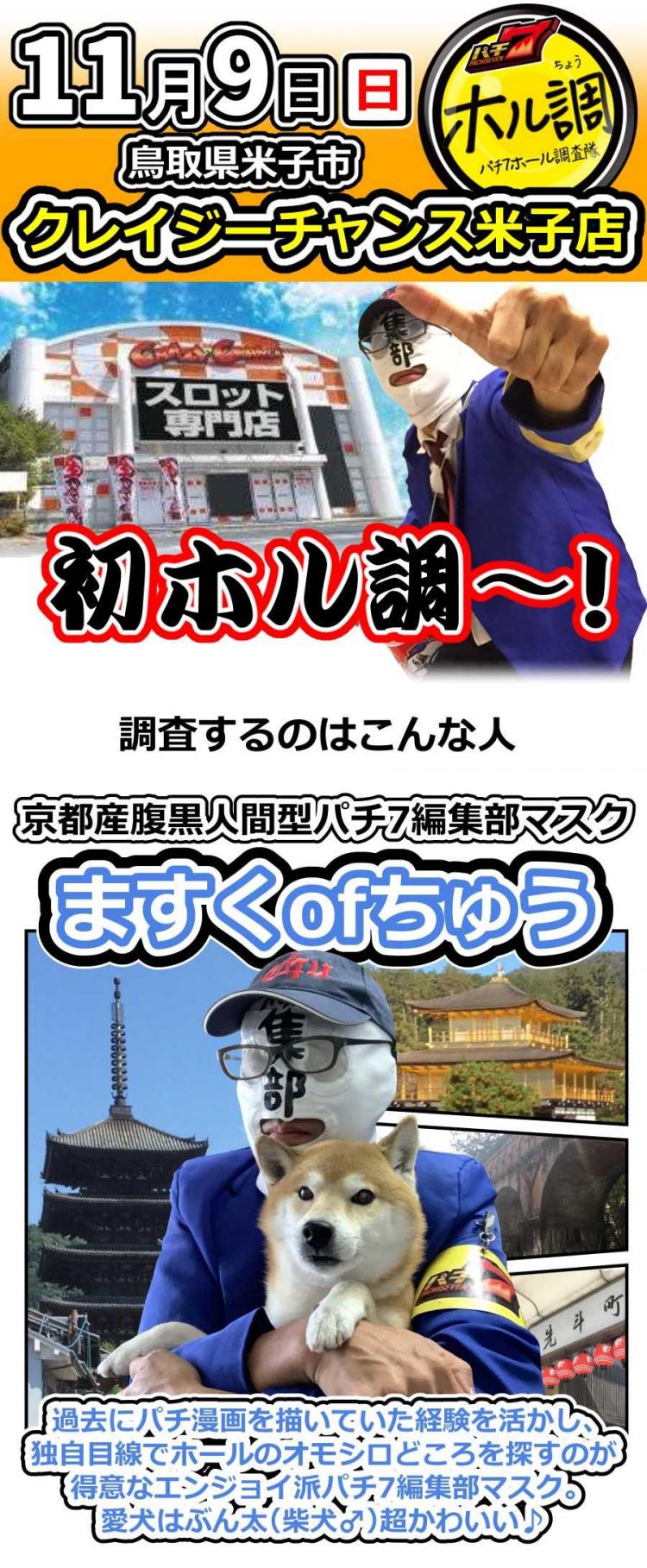 - 【11/9(日)】初ホル調!鳥取県米子市・クレイジーチャンス米子店ってどんなホール?ますくofちゅうが調査へ!