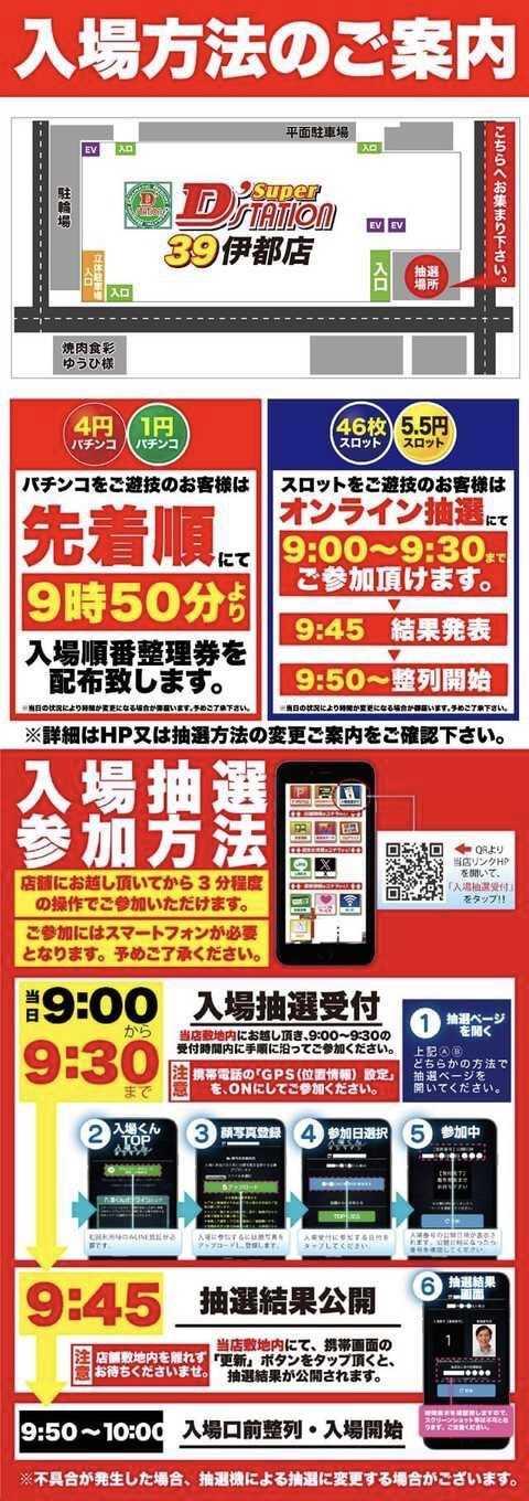 ■入場ルール:スロットオンライン抽選/パチンコ先着順