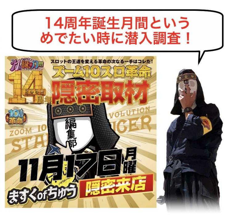 14周年誕生月間の 10スロ革命の勢いは果たして!? 潜入徹底調査ー! |