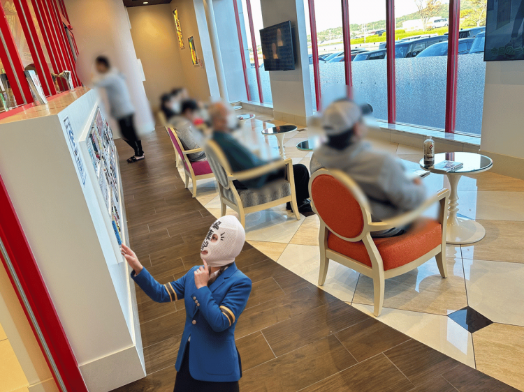 ワゴンサービスで色んなドリンクが楽しめるのはもちろん、すぐ隣にはカウンターの休憩スペースも!カフェメニューで人気なのは『ココア』や『バナナオレ』なんだとか♡