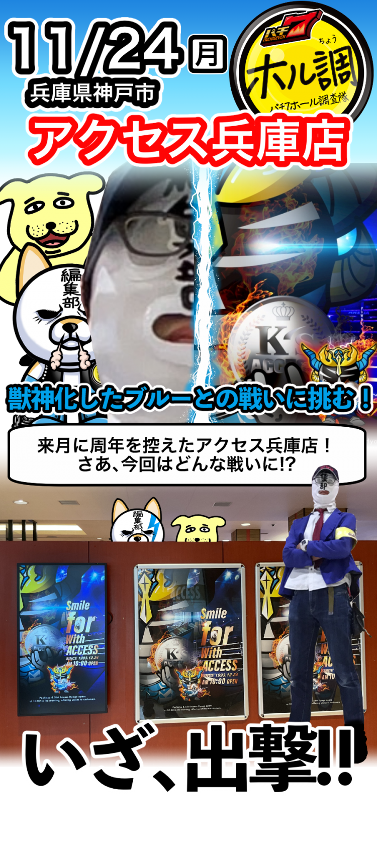 - 【11/24(月)】獣神ブルー覚悟!神戸市兵庫区・アクセス兵庫店をますくofちゅう軍団が調査へ!