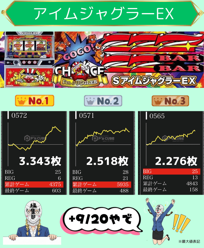 ジャグラー狙いの方も多くて、直近データを見ながらみなさん狙い台を絞っていましたよ♡