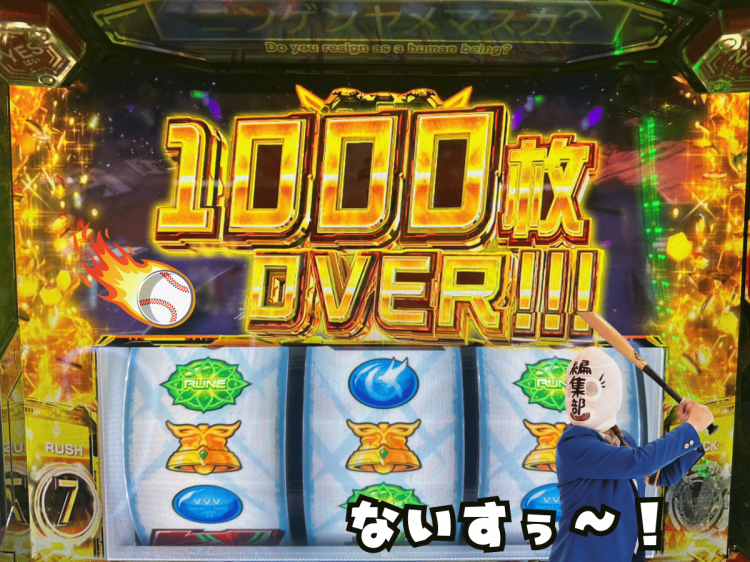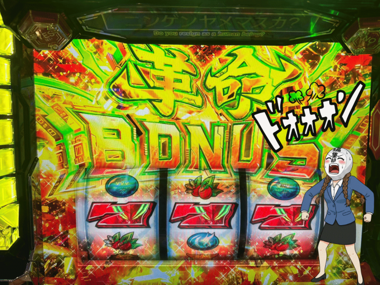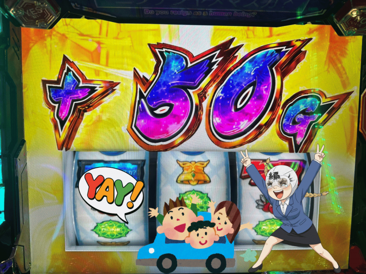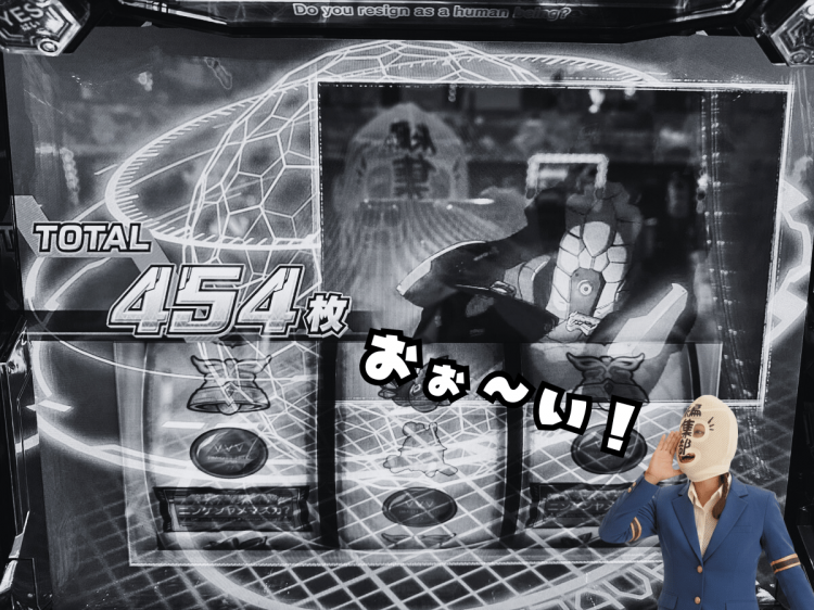 この後すぐに決戦ボーナスを引いて3回目の超革命に突入しましたが、『万枚狙える??新幹線間に合う??』ってそわそわし始めた途端に1000枚ほどで終わりました。笑