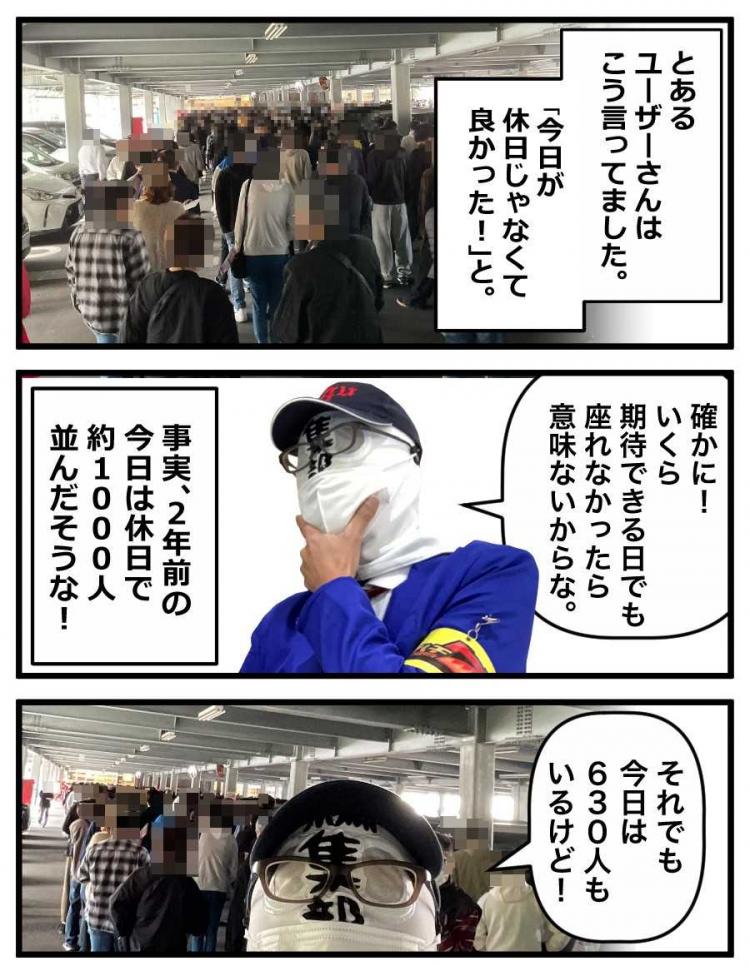 | 朝並び | 抽選参加人数:630人 一般入場:100人以上! |