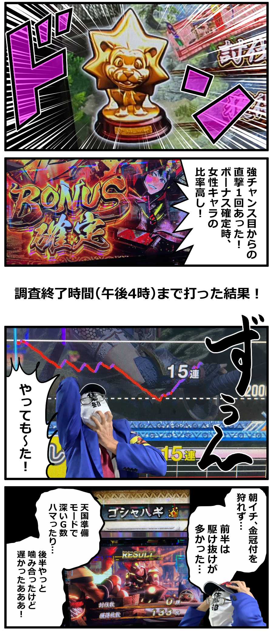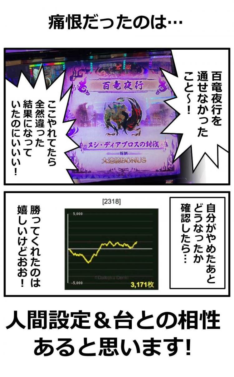 スロ、パチの勝率は…まあ、そこはええやん。目押しレベルは3(10段階)。
