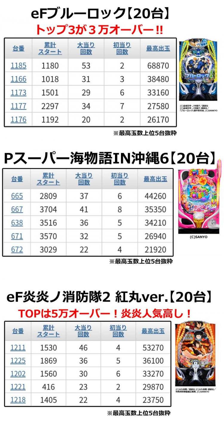 | 稼働 | パチスロピーク稼働約95%オーバー! パチンコピーク稼働約80%オーバー! |