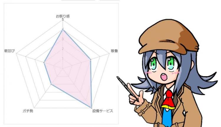 | 稼働 | パチンコ・パチスロ合わせてピーク時は約7割前後 |