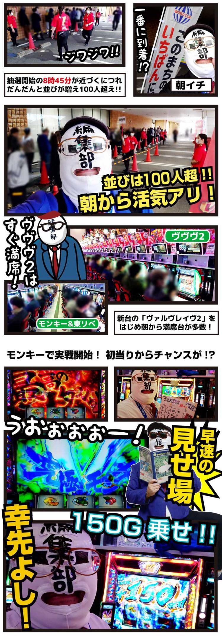 ちなみに、調査としては新台の「ヴァルヴレイヴ2」や圧倒的設置数の「ネオアイムジャグラー」が気になったかな~。この2機種はさらに盛り上がっていくんじゃないかと予想。今後の取材でも要チェックです!