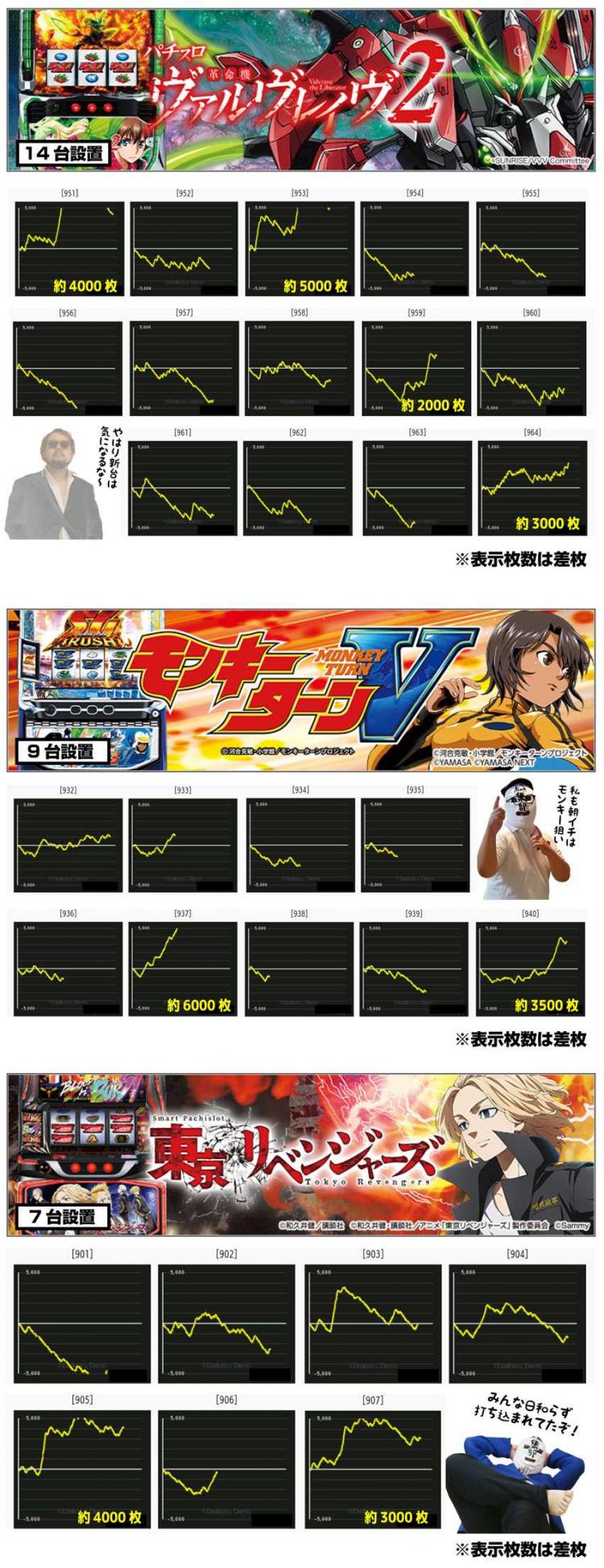 結果的に見ると、「モンキーターン」⇒「ハナハナホウオウ」⇒「ヴァルヴレイヴ2」と、当初の狙い台のみを打つ展開に。