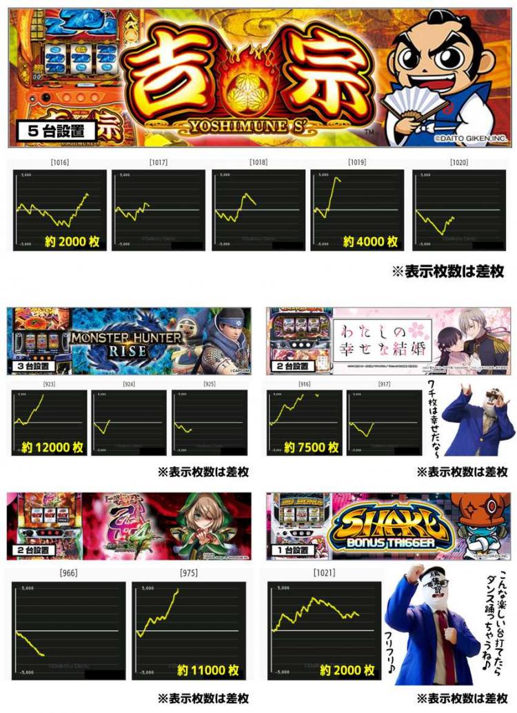当日のデータで特に気になった台を厳選して紹介! 新台、スマスロ、ノーマルタイプなどなど、幅広い機種にチャンスがあった印象。