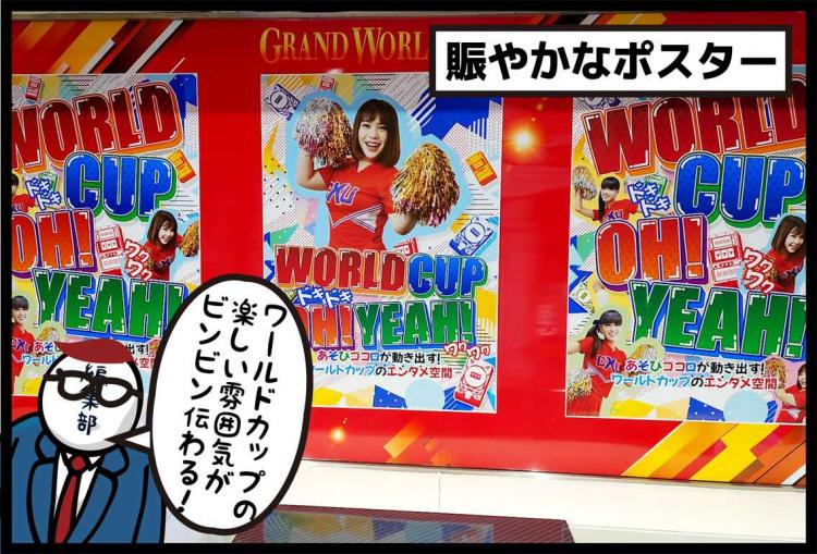 ワールドカップの楽しい雰囲気がビンビンに伝わってくるホール店内! 私(ホル調)のディスプレイが店内の至るところにあってうれしかったな~。ちなみに、よーく見るとちゅうさんの姿も(笑)。