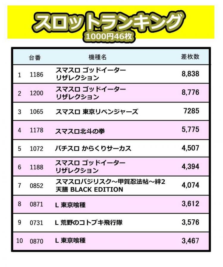 | 稼働 | パチスロピーク稼働約70% パチンコピーク稼働約50% |