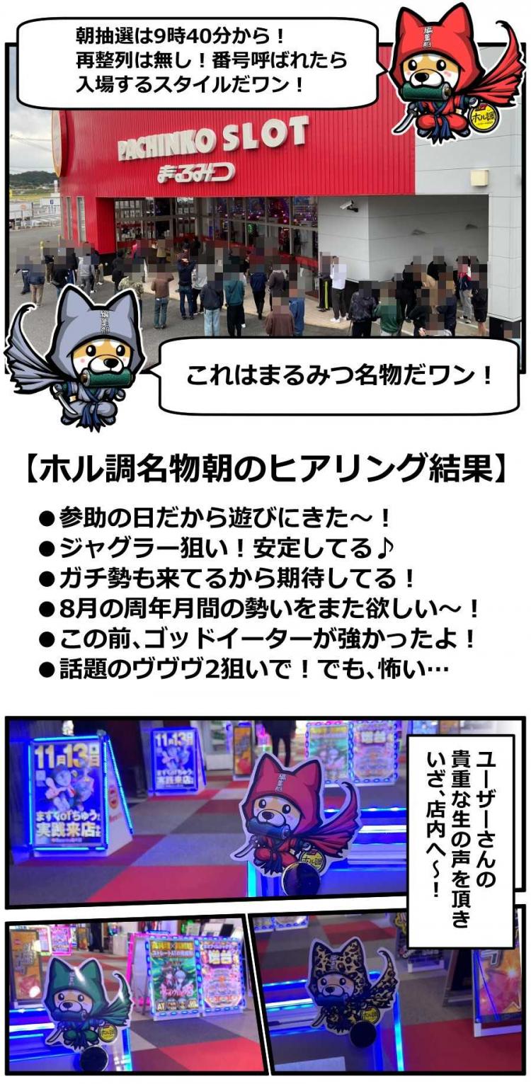 【11/13(木)】まるみつ佐々店の常連さん好みの機種が、安定の結果を出していたで~!